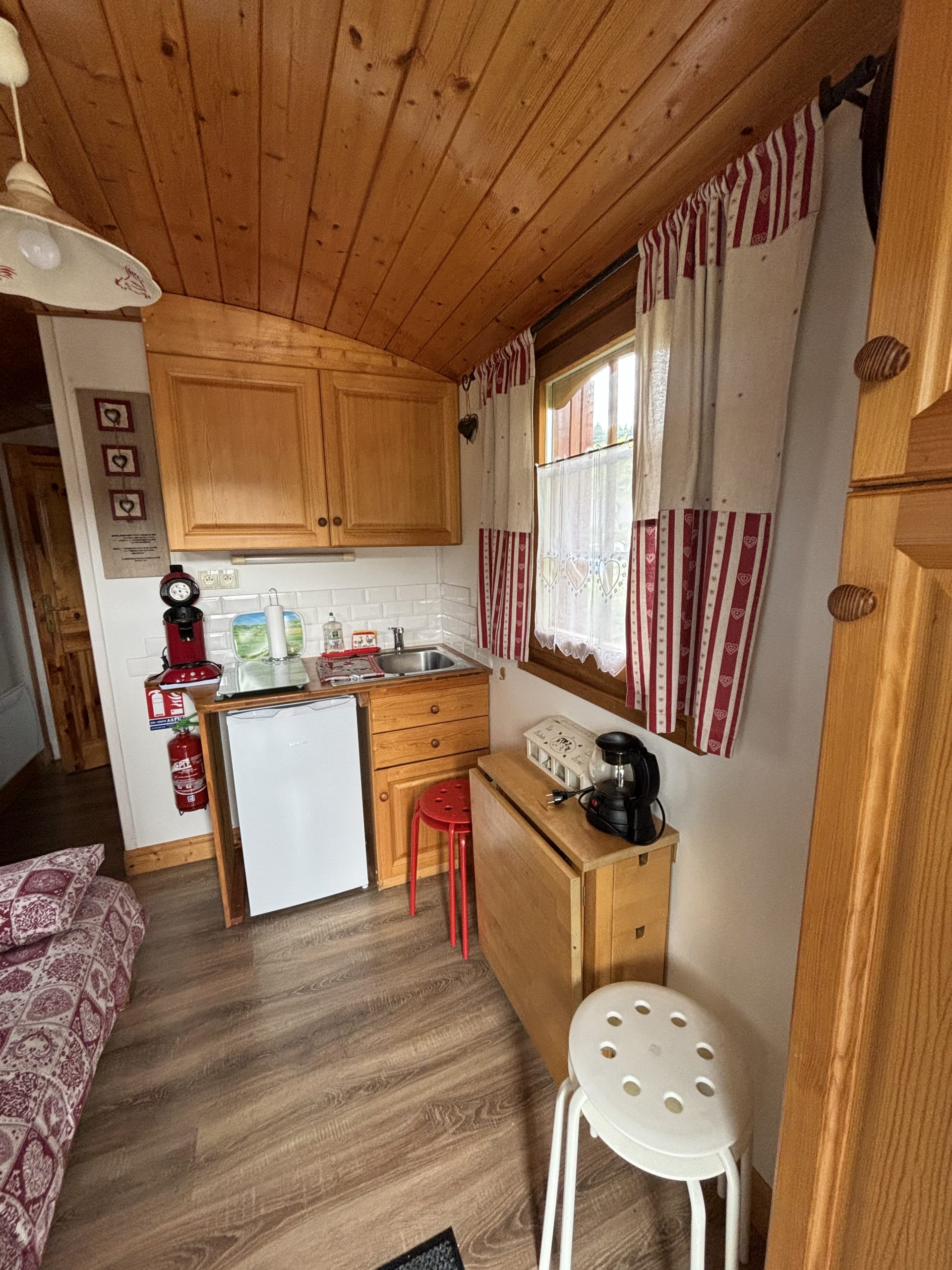 La roulotte « La Vosgienne » est équipée de tout le nécessaire pour que vous vous sentiez comme à la maison :